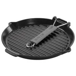 Staub 28 Cm Round Cast Iron Grill Pan With Pouring Spout Black