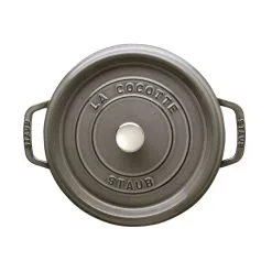 Small but mighty: this 16 cm diameter, 0.4 L capacity, round, graphite grey gratin dish from STAUB is perfect for small portions of food. Beautifully presented individual portions of lasagne, moussaka, pasta bake and potato gratin are just some of the dishes it can be used for. Professional chefs from all over the world swear by STAUB’s cast iron cookware due to its excellent cooking and heat-distributing capabilities. The graphite grey, cast iron gratin dish therefore cooks gratins gently and evenly on all sides, resulting in succulent food of incomparable flavour. It is also a very robust, durable material with an integrity that makes it a pleasure to cook with. The round graphite grey gratin dish can be stacked and features practical handles on each side so it can be handled more easily. It can also be used on all heat sources and can of course be placed in the oven. This high-quality cast iron gratin dish is perfect for making tasty oven-baked dishes, succulent gratins or delicious oven-baked desserts and for presenting them at the dining table.