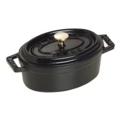 This rectangular mini gratin dish made from easy-care cast iron finds many fans amongst amateur cooks and professional chefs the world over. Cast iron is a durable material that distributes heat evenly throughout the food, making this classic dish ideal for preparing delicious meals such as potato gratin. Since food cooks gently in a cast iron dish, all the essential nutrients found in each ingredient are preserved. With a length of 15 cm, a width of 11 cm and volume of 0.25 L, this black mini STAUB gratin dish is ideal for making smaller portions, as well as sides for one or two people. This compact dish can be used for browning food on the cooker and can then be placed straight into the oven to make the gratin, saving you the effort of transferring food from one pot to another. These attractive gratin dishes can be used on all heat sources and taken straight from the kitchen to the dining table. With this versatile, easy-to-handle rectangular mini gratin dish, many hours of cooking enjoyment lie ahead.