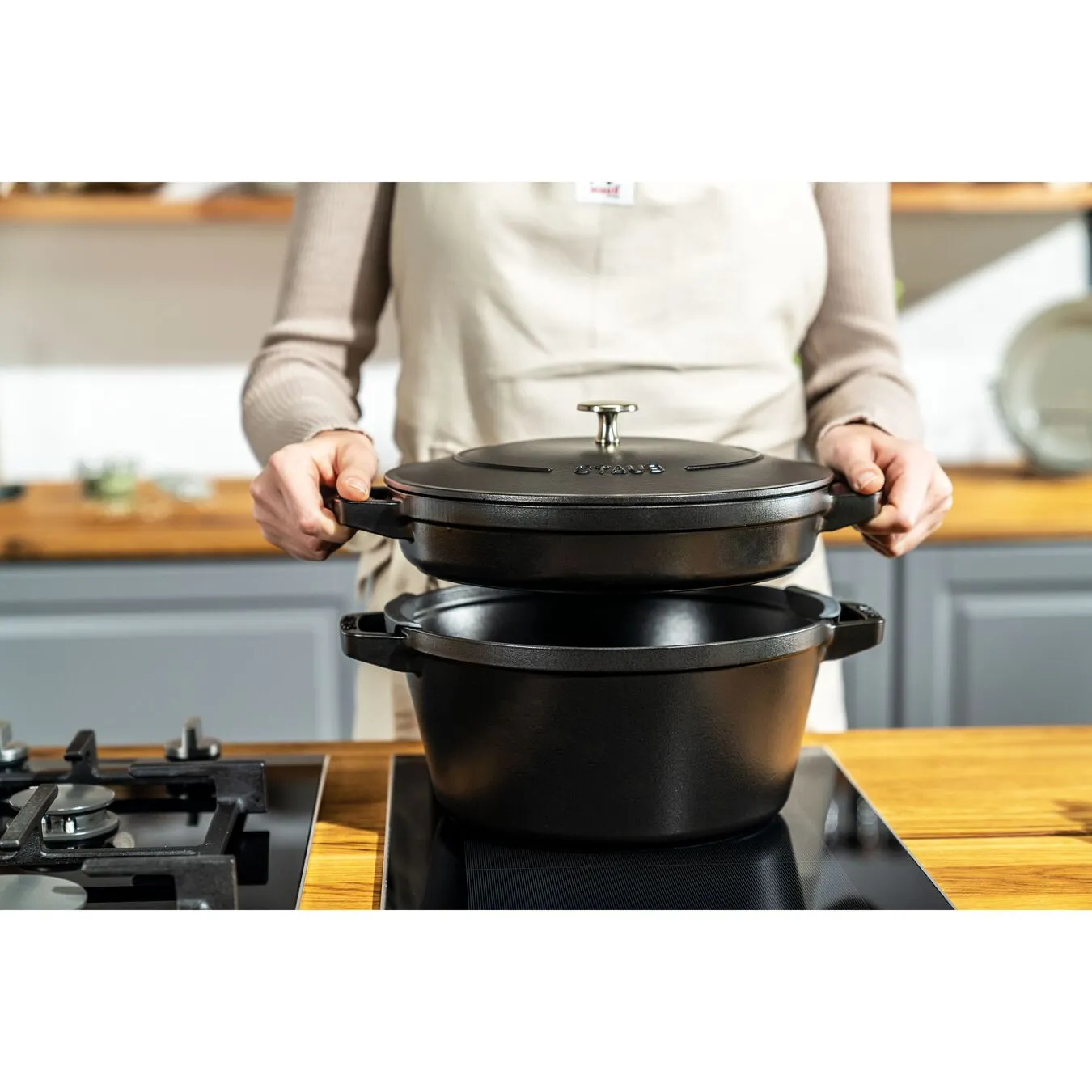 When it comes to cast iron cookware, two essential items are the foundation of a well-equipped kitchen: a cast iron pan or skillet and a Cocotte or Dutch oven. Between them, they cater to nearly all of your culinary needs. And with the new stackable edition by STAUB, you can now keep them neatly piled when not in use, so they take up as little storage space as possible while still looking great.