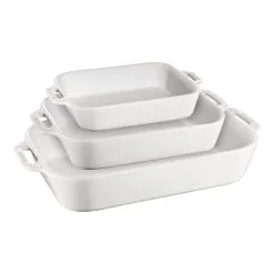 The Rectangular Baking Dish Set features three nestable rectangular bakers for all your sweet and savoury baking needs, whether you’re cooking for a crowd or just for two. STAUB stoneware bakers gently retain heat and won’t absorb moisture, producing a delicious result for all of your favorite recipes.