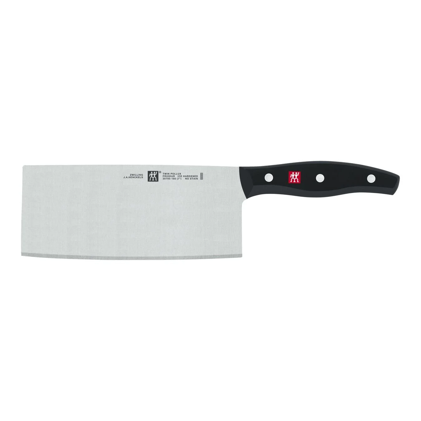 The ZWILLING TWIN® Pollux Chinese chef’s knife has an 18.5cm blade and is ideal for ambitious beginners who place a high value on exceptional quality and design. Perfect for preparing meat, fish and vegetables using traditional Chinese cutting techniques, this slim blade has a large surface area and very sharp cutting edge so you can chop up a wide variety of ingredients reliably and safely. The knife also features a refined three-rivet handle for maximum comfort while cutting and bears the red ZWILLING logo to reiterate its high-quality design. The Chinese chef’s knife’s blade is made from ZWILLING special formula steel, which undergoes a special ice hardening process to achieve an even higher quality finish. The FRIODUR® blade is extremely corrosion-resistant and flexible and has exceptional edge-retaining capabilities. Not intended for rough chopping, the TWIN Pollux Chinese chef’s knife is best used to prepare meat and vegetables using traditional Chinese cutting techniques and for creating delicious, exotic dishes.