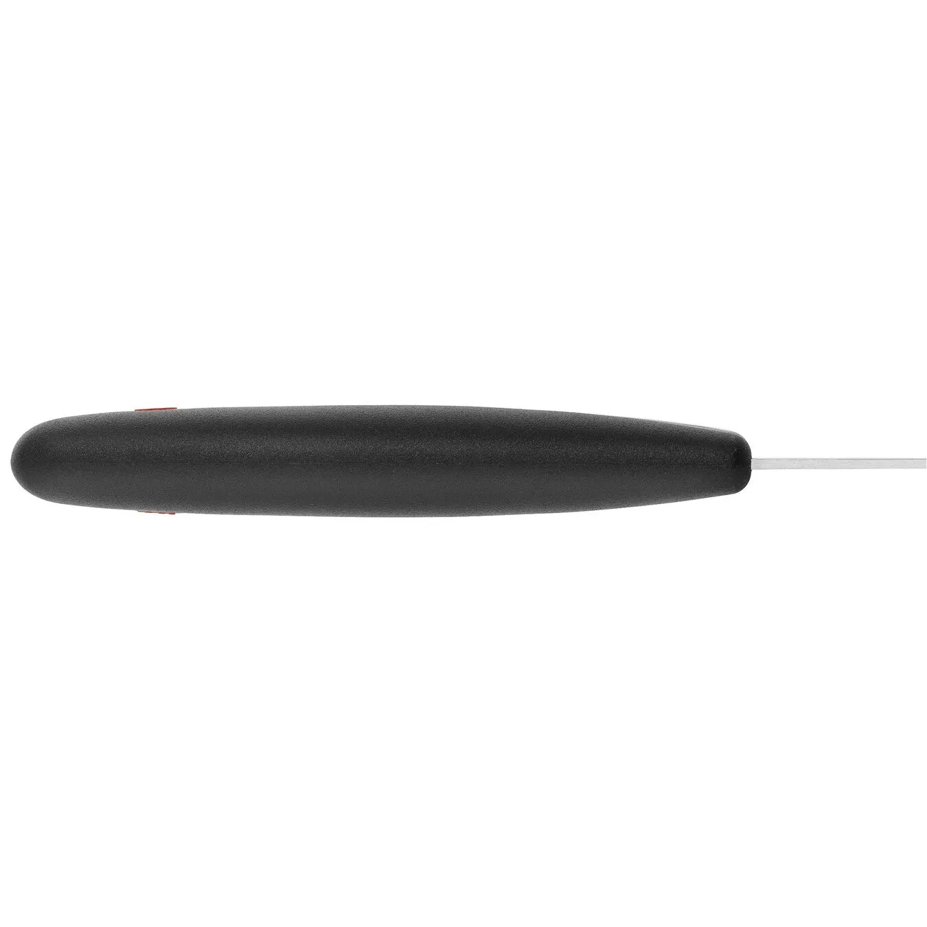 The chef’s knife from the TWIN® Point range by ZWILLING is a true all-rounder for cooking enthusiasts. The stable knife has a broad, powerful blade and straight cutting edge, which reliably cuts and chops vegetables and herbs. The chef’s knife features an ergonomic handle in non-slip plastic, which ensures safe and comfortable handling. The striking red ZWILLING logo is also eye-catching and lends an elegant appearance. The blade is made from the special ZWILLING special formula steel, a high-quality stainless steel, which is then ice-hardened. This special material ensures that the blade with FRIODUR® logo is particularly resistant to corrosion, has excellent cutting properties and is extremely flexible. This knife is an all-rounder that will assist in daily cooking. With this kitchen aid from the TWIN® Point range from ZWILLING you can cut vegetables and herbs for tasty salads reliably and precisely.