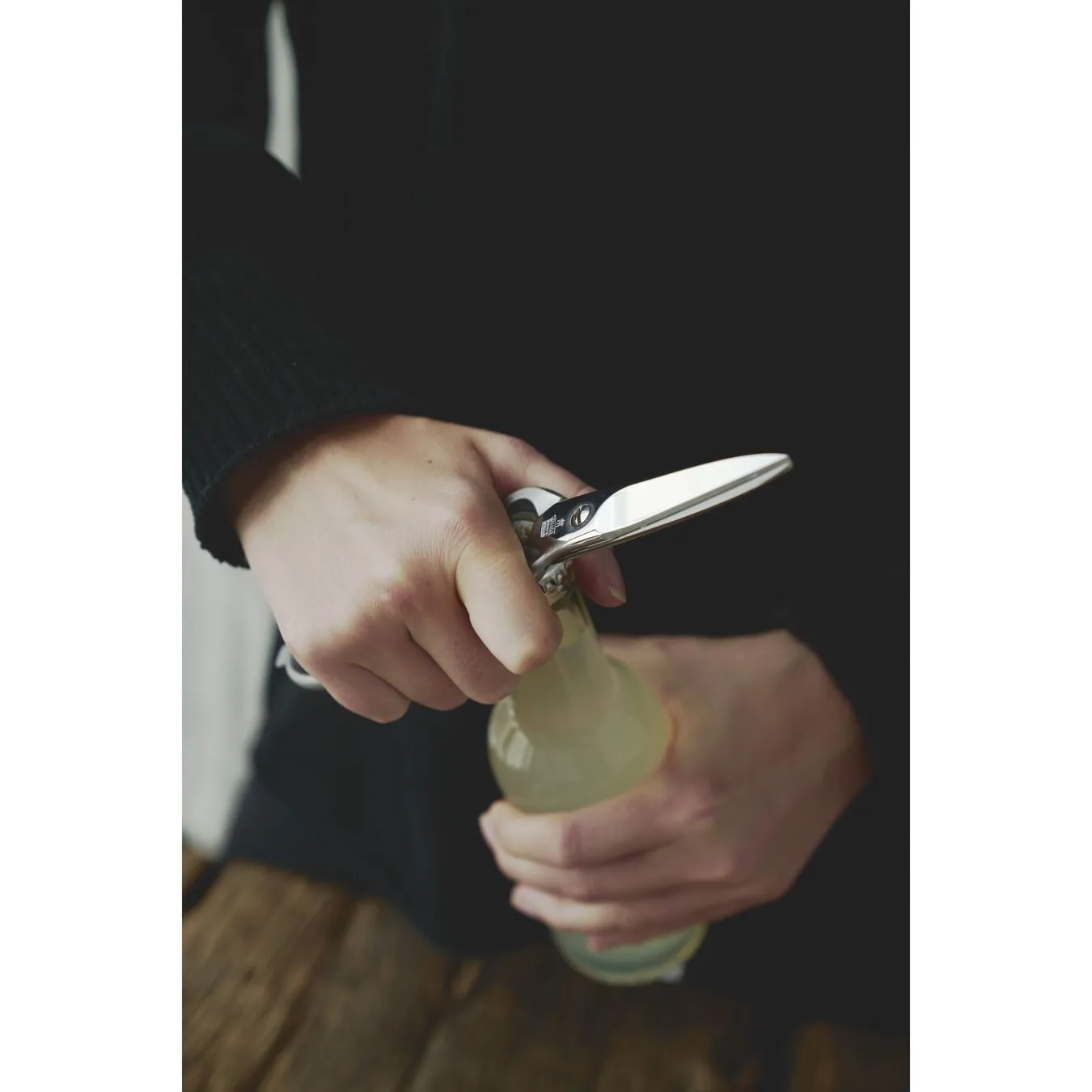 The robust all-rounder. Easy to use, in proven ZWILLING quality. The practical multi-purpose shears made of special formula stainless steel and with ergonomically designed handles made of sturdy plastic are simply indispensable in any household. The shear blades are hardened in a special process, furnished with micro-serration and honed by hand to always cut precisely and safely. The perfect everyday tool for effortlessly cutting, shortening and forming anything that requires it in the kitchen, office or workshop. The highlight of the ZWILLING all-rounder: the integrated opener for caps and screw lids. Suitable for right-handed and left-handed users alike!
